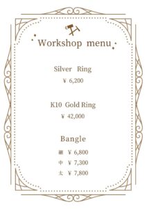 2026年1月より価格改正を行い、シルバーリング&バングル制作、K10リングなどのお値段は記載の通りの価格になります。