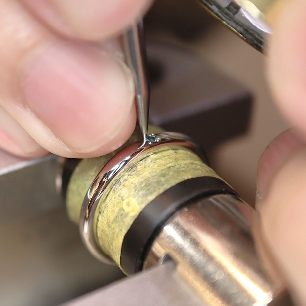 - ダイヤモンドなどの天然石も自社で仕入れ、お2人の前でセッティング。